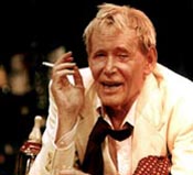 Fortunately, O'Toole was able to redeem his theatrical reputation with powerful performances in Shavian roles that he had appeared in successfully earlier in his career, such as John Tanner in Man and Superman, King Magnus in The Apple Cart, and Henry Higgins in his belated Broadway debut in Pygmalion. But when O'Toole finally braved a theatre role that he had not played already, as the drunken Soho journalist in Jeffrey Bernard is Unwell (pictured), he had one of the greatest successes of his career and won the Laurence Olivier Award for his virtuoso performance. But he never again returned to Shakespeare.