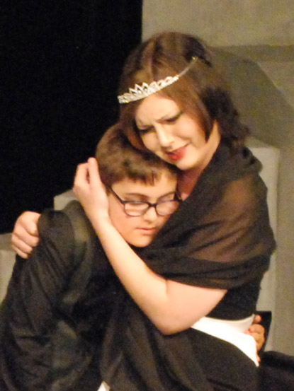 Eliot Troop as the young Duke of York and Jessicah Neufeld as Queen Elizabeth.