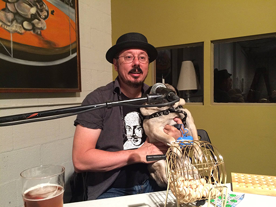 Winston and Jon hosting a "Shakespeare Bingo" night during the run.