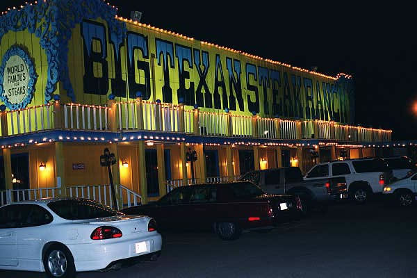 The Big Texan Steak House in Amarillo, where you can get a 72 oz. steak for free - provided you can eat it and all the fixin's in under an hour. Otherwise, it's about seventy bucks. Neither Jon nor Bro Joe attempted this feat.