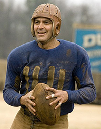George Clooney in Leatherheads You heard me: that distinction doesn't belong to someone like Charlie Chaplin or Walt Disney. The most well-rounded artiste in Oscar history is the creative force behind Leatherheads, who has been nominated for Best Actor (three times), Best Supporting Actor (winning for Syriana), Best Original Screenplay (The Ides of March), Best Adapted Screenplay (Good Night and Good Luck), Best Director (also Good Night and Good Luck), and now Best Picture; and he's done all this while banging a different supermodel every night in his luxurious Italian villa on top of a pile of money. I liked Argo but I thought it was a fairly run-of-the-mill espionage thriller with a ludicrously over-the-top ending and a far cry from the best movie of the year (which for my money was the sublime French film Amour, which made me cry like a little girl). But I've decided that Argo is the one to beat because while the other Best Picture nominees have some famous names behind them like Steven Spielberg, Cameron Mackintosh and Kathryn Bigelow, only Argo was helmed by someone with Jehovah's carefully-lubed index finger inserted lovingly up his anus. Mr. Clooney's charmed life has allowed him to cultivate a smugness which reached its apex when he won his first Oscar for Syriana and he raised a stink for absurdly giving Hollywood credit for the civil rights movement (because they gave an Oscar to African American actress Hattie McDaniel "when blacks were still sitting in the backs of theaters," overlooking the fact that Ms. McDaniel was required to sit at the back of the auditorium near the kitchen at the Oscar banquet at which she won the award and read a speech prepared by the MGM publicity department in which she promised to be a credit to her race) to being at the forefront of the fight against AIDS from the beginning (the New York Times first reported on the disease in 1981 and it took Hollywood years to jump on the bandwagon). But Mr. Clooney is always forgiven his pomposity because he makes good movies and he's got those dreamy eyes that I could get lost in for weeks. He may be an asshole, but he's God's asshole.Here are my final predictions for the other Oscar categories. We'll find out how badly I suck at this on Sunday: