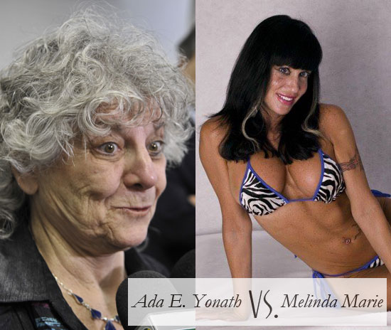 Ashton Kutcher, who made quite a splash on the social network by accepting the prestigious Teen Choice Award and sagely advising his young audience that the sexiest thing in the entire world is being really smart, thoughtful and generous, while "everything else is just crap". This sentiment got him a lot of kudos from the professional circus freaks who commented on Facebook, but I wondered if it would stand up to scientific examination. So since we began this week's list with a "Who's Hotter" pole, I'm going to end it with another pitting Ada E. Yonath against my Facebook friend Melinda Marie. Dr. Yonath won the 2009 Nobel Prize for Chemistry for her studies of the structure and function of the ribosome, which made tremendous strides forward in the development of antibiotics. Since Dr. Yonath's work not only won her the Nobel Prize but was beneficial to humanity when I have no doubt she could have made a lot more money if she'd followed a medical career in breast augmentation, I think it's safe to say that she is smart, thoughtful and generous. Ms. Marie on the other hand appears to possess an I.Q. in the mid 80's range (based on her Facebook posts anyway) but she looks smokin' hot in a bikini. You settle if Mr. Kutcher is right or not based on these two examples. May the sexiest woman win.