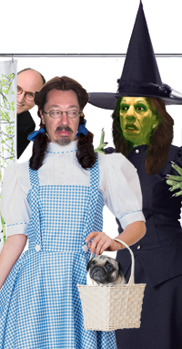 Speaking of my nemesis Misty LaRue, my nemesis Misty LaRue who was positively giddy with excitement when she learned that there would be a tribute to The Wizard of Oz at this year's Academy Awards ceremony. At first I was puzzled, since I was unaware of any particular fondness she had for the epic trek down the Yellow Brick Road. But then I thought of my annual Oscar-watching party and the people who would be in attendance, and realized that we comprised the cast of characters of L. Frank Baum's story. Winston and I are Toto and Dorothy, two innocents who were thrown by fate into a society of misfits and want nothing more than to get the hell out of there. The fore-mentioned Eddie Frierson represents the munchkins by virtue of his tiny penis. Bro Joe is the Cowardly Lion who can only find his courage after imbibing at least a fifth of alcohol. Glenn "Piece of Shit" Simon is the Scarecrow, who somehow can manage motor skills and sentient speech despite lacking a brain. Mara Marini (whose acceptance to my invitation to the party must have gotten lost in the mail because I still haven't received it) is the Tin Woodsman, since her constant rejection of my amorous advances clearly indicates that she has no heart. And Ms. LaRue herself is cast to type as the Wicked Witch of the West, whose key ambition is to destroy me for a prize as insignificant as a pair of shoes. She won't arrive at the party with the witch's green pallor but after loading up on onion dip and my signature mini-burritos she'll be her spitting image by the time the Best Picture award is handed out. By then, the only race to be decided is who will make it to the toilet first, the Wicked Witch to purge the buffet or the Cowardly Lion to puke up his courage. While they're in there, they'll have to pay no attention to the man behind the shower curtain. He's just going to turn out to be a boring old fraud from Kansas, anyway. It's the role Dan E. Campbell was born to play.