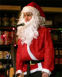 My Number One enemy of 2013 Jesse Merlin, who is doing his damndest to be named my Number One enemy of 2014. I saw Mr. Merlin in a delightful production entitled Christmas Smackdown in which my nemesis and a group of other dubious characters performed some charmingly cynical Yuletide anti-carols composed by Cynthia Carle and Mark Nutter. It was an enjoyable diversion until Mr. Merlin came out dressed as Santa Claus and sang a song about how he was only doing the job for the insurance coverage. Those of you who took the time to read my annual Christmas story Jonny's Hollywood Christmas (those of you who didn't can burn in hell) know that I cast Mr. Merlin as the antagonist of the piece, a surly egomaniac named Jesse Merlin. While I took some artistic liberties with the character (primarily to make him more likable than his real-life namesake, who is about as congenial as a case of ebola virus), it was a fairly even-handed depiction of what Mr. Merlin is actually like. It was therefore disconcerting to me to watch him slither about the stage dressed as Saint Nicholas. With Christmas less than a week away, I've done what I can to erase the memory of Santa Merlin from my consciousness (primarily through the imbibement of lots and lots of alcohol) but if that deep-voiced bastard comes crawling down my chimney on Christmas Eve, I'm sicking my beloved pug Winston on him. The most damage an obese pug with a perpetually sunny disposition would inflict on an intruder might be to lick him to death, but I'm hoping that the sight of Winston's fat ass suddenly lunging at him will be enough to send Santa Merlin scampering back up the chimney before he can make any trouble. But I do hope he'll stay just long enough to leave the bucket of coal that he gives me every year. Whenever Mr. Merlin enters a room, the temperature seems to drop about ten degrees so I can really use the heat.