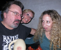 Sara J. Stuckey. I was joined at the show by my associate Glen "Piece of Shit" Simon and his inexplicably hot girlfriend Megan Reynolds, who took me out to dine beforehand in honor of my 168th birthday the following day. Ms. Stuckey - a friend of Mr. Simon and Ms. Reynolds - was also dining at the restaurant and introduced herself to our party by "photo bombing" a picture I took of my hosts just as they were arguing about who would have to sit next to me. You can see from the photo that Ms. Stuckey was the only one who seemed happy to be there and even forestalled calamity by taking the seat between Meglenn (as the couple is known in the tabloids) and me so that they wouldn't be in the splash zone of my projectile vomiting that inevitably follows any time I am binge drinking when someone else is picking up the tab. The only unfortunate aspect of Ms. Stuckey's brief stopover at our dinner was that she ultimately went back to her own table, leaving Meglenn and I to stare at each other uncomfortably as we finished our meals. Fortunately, I was able to fill the time by doing some bombing of my own with the promised projectile vomiting that my guzzling of hooch on Meglenn's dime. All in all, I'd call it my best birthday ever.
