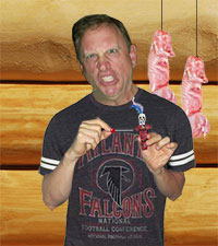 My longtime acquaintance Eddie Frierson, who hosted a Super Bowl party at his cabin located on the outskirts of town. Mr. Frierson originally hails from the deep south so the only food he had to provide his hungry guests was deep-fried possum in heavy gravy, a repast that doesn't agree with my heart-healthy diet. So I only stayed to view the first half, watch the half-time show with Lady Gaga, and masturbate in the outhouse after watching the half-time show with Lady Gaga before making my farewells to go home and chow on something that wouldn't send my cholesterol into the pressure cooker zone. Alas, as I left the do the Atlanta Falcons (for whom Mr. Frierson was rooting passionately) were enjoying a heavy lead and the last thing my host said to me before I sped away was "If the Birds {an endearing nickname he sometimes uses for the Falcons} lose, I'll know who to blame." As soon as I left, the game descended into an historic meltdown which saw the Birds (née Falcons) lose to the New England Patriots in overtime. The moment that the rout was over, I knew that Mr. Frierson was constructing a voodoo doll to punish me for taking my "good magic" out of his cabin to ensure the Falcons' loss. I'm not overly worried because he's made many voodoo dolls to vex me in the past and they rarely inflict any more discomfort than a dull headache and a few nights featuring sex dreams with Kevin James before Mr. Frierson moves on to some other diversions. But hindsight always being twenty-twenty, I wish that I'd stayed to eat the fucking possum.