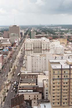 right: the scenic view of downtown New Orleans from the trio's hotel