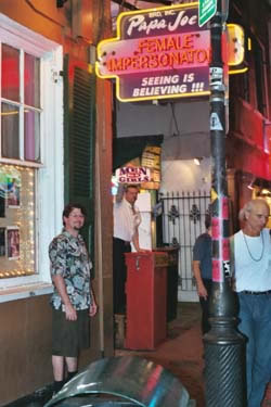Joe outside an establishment on Bourbon Street that proudly bears his name.