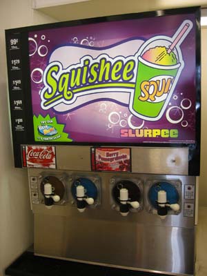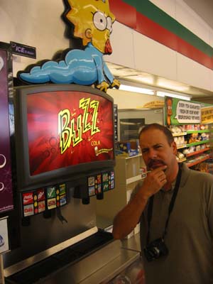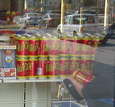 at a Buzz Cola dispenser.