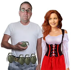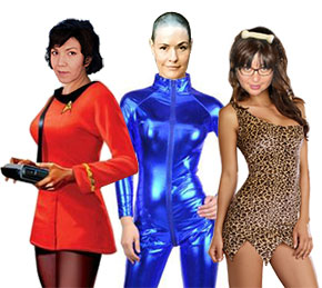 When you show up a million years in the future, the last thing you want is to lose cred with your new space-age pals by looking like an idiot wearing Ug boots, "Juicy" sweat pants and a MAGA tee shirt. We've done extensive research watching sci-fi movies and TV shows from the 1960s and 70s, and we've determined that future fashions will fall into three distinct categories: Starfleet miniskirt uniforms, unisex metallic jumpsuits and crudely-made loincloths from when humankind is enslaved by alien overlords or an animal species that has skipped past us in the evolution chain. Just tell our designers what year you're traveling to and they'll put together an ensemble that will make you fit right in! |