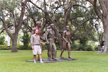 Below left: Jon studies the statue's backside.