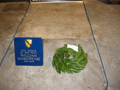 grave. The wreath is in honor of the Bard's birthday on April 23,